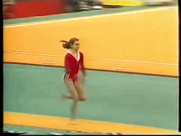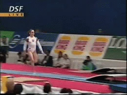 | round-off, half-on, front tuck salto with 1½ twist (Khorkina)